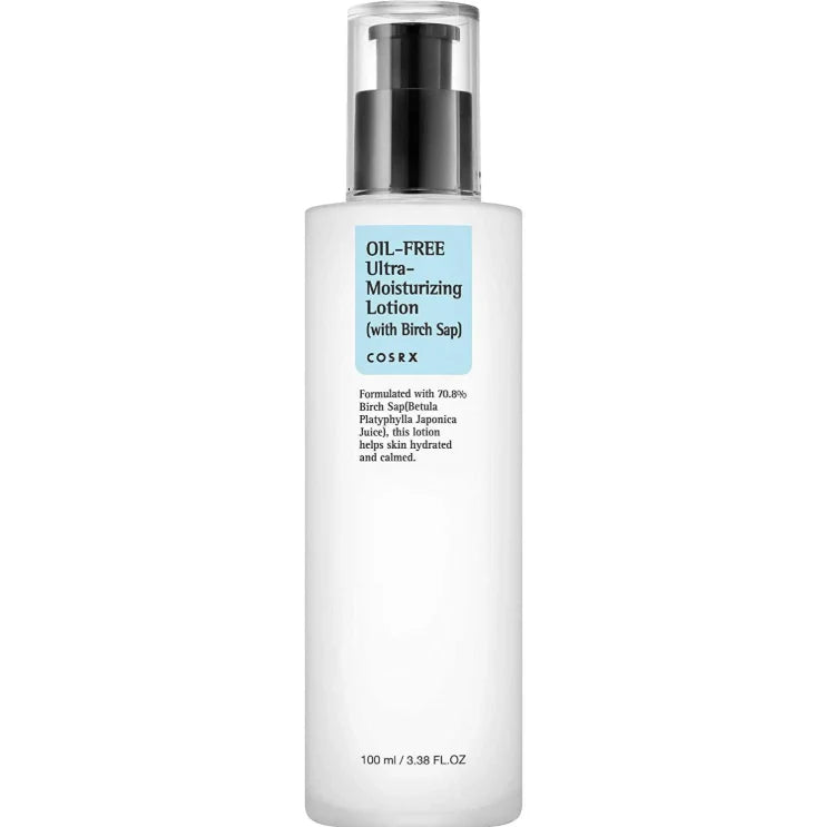 La Oil-Free Ultra-Moisturizing Lotion de COSRX est une lotion hydratante fluide et non grasse , spécialement conçue pour hydrater, apaiser et équilibrer tous les types de peau, y compris les peaux grasses, sensibles et sujettes aux imperfections .